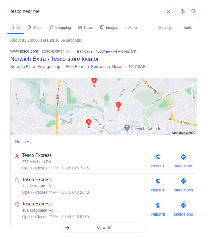 Let's say you are looking for a supermarket closest to you, you will see the below listings at top of Google search - all of these searches at the top are indexed locations for the nearest supermarket to your location.
